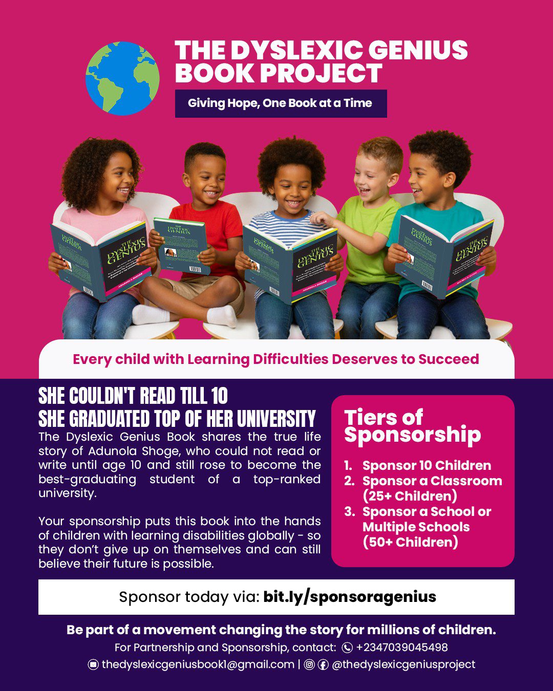 Find out more about Adunola Shoge’s journey from lived experience of growing up with severe dyslexia and eventually emerging the Best Graduating Student of a top-ranked university in Africa – the first-of-its-kind academic achievement for a dyslexic learner.